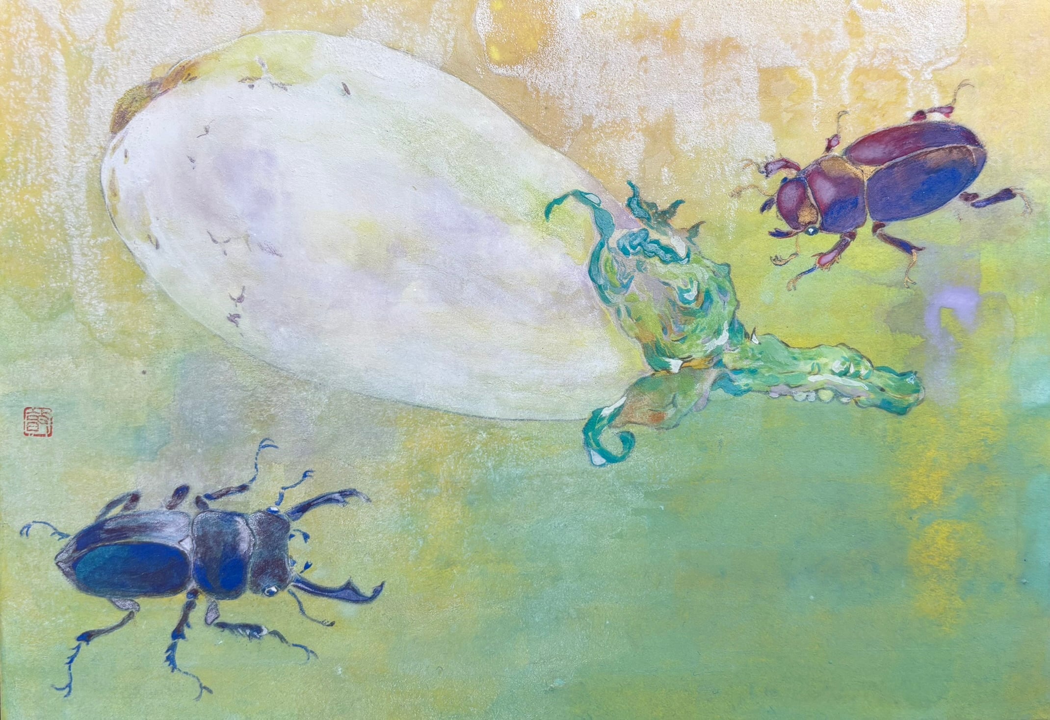 Mineral pigments, washi paper, gold