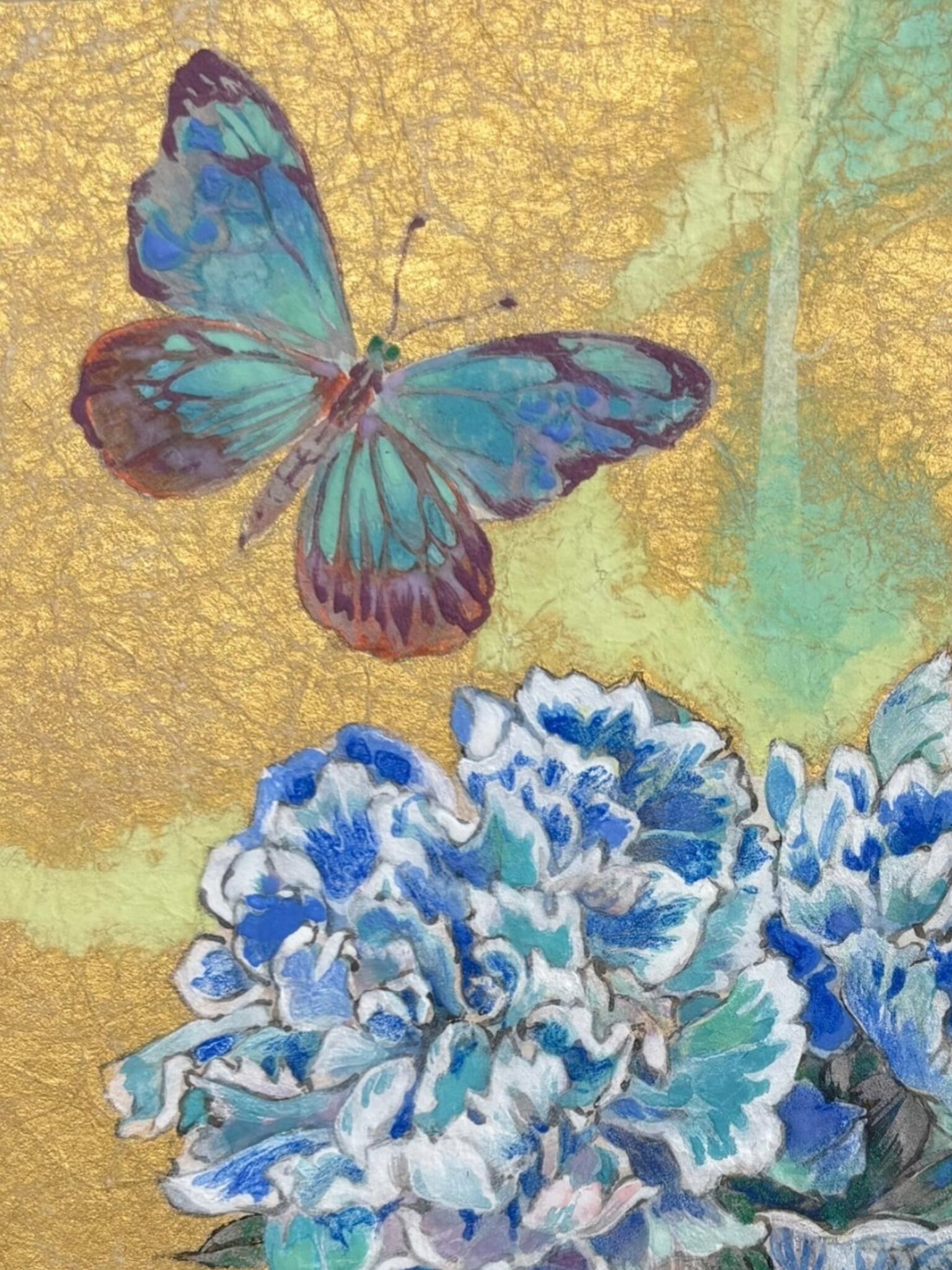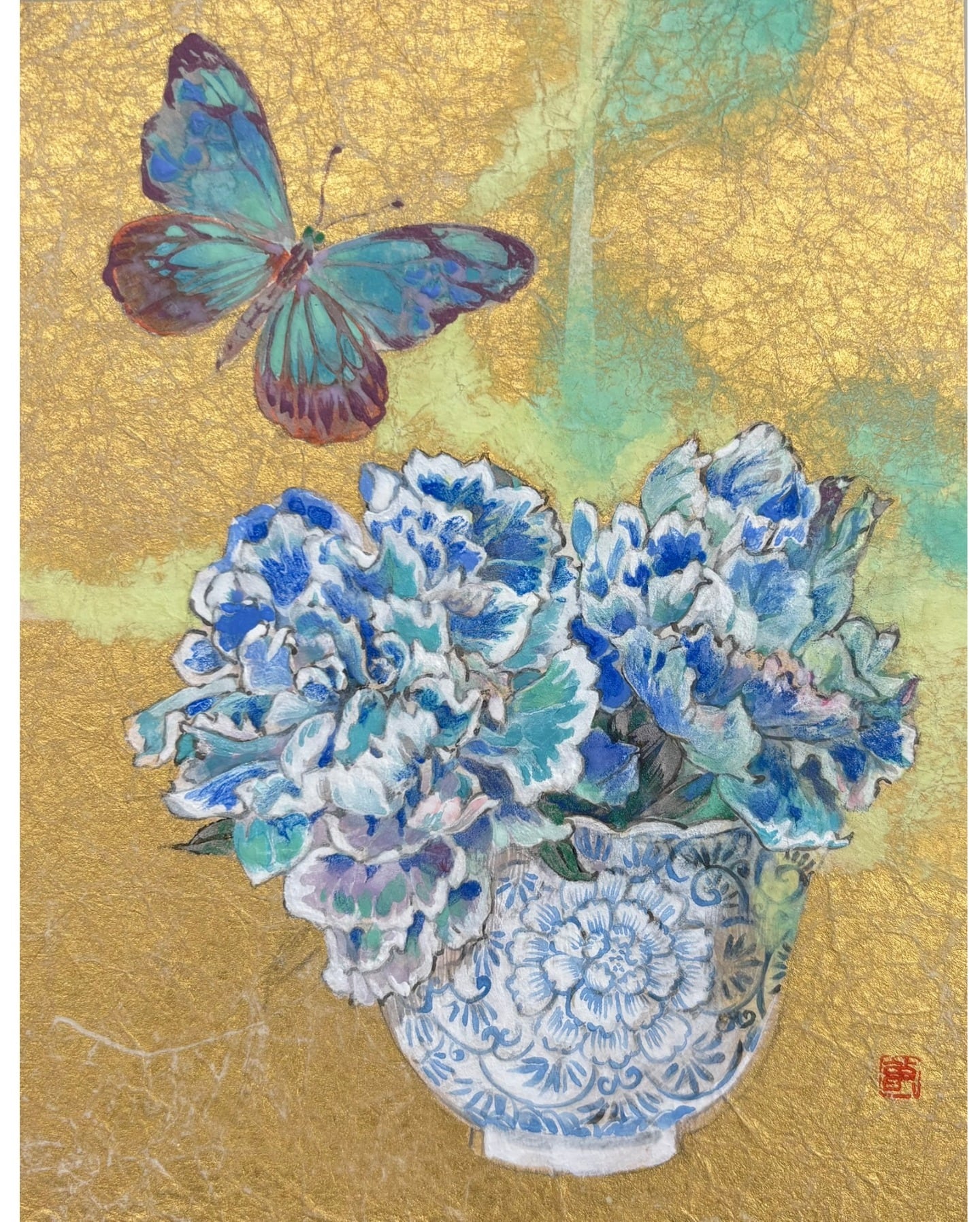 Mineral pigments, washi paper, gold leaf