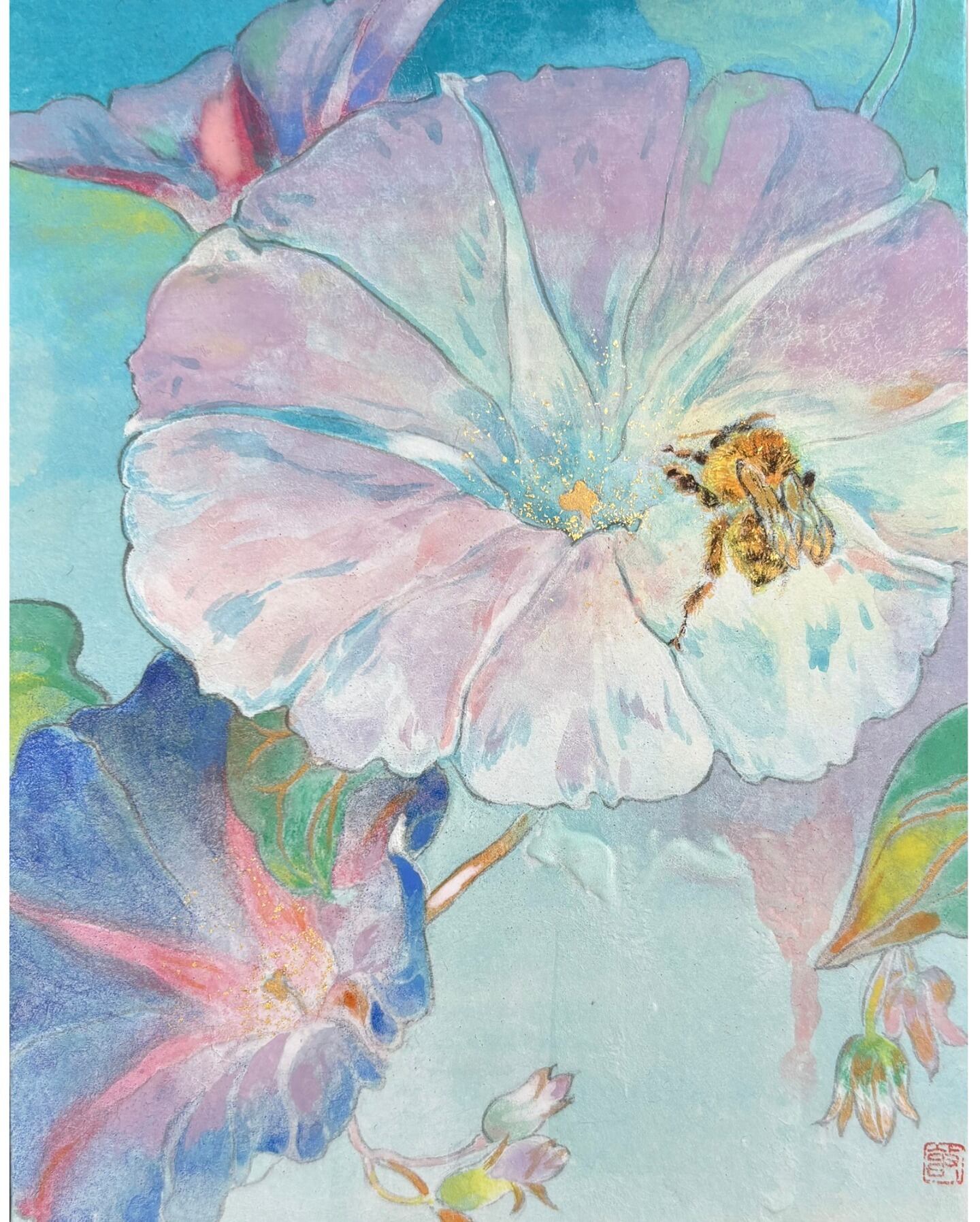 Mineral pigments, washi paper, gold leaf